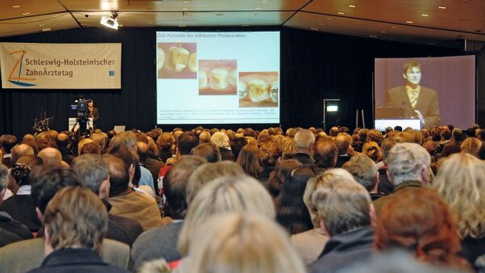 Wer sich unter staatliche Rettungsschirme flüchtet, sich zu sehr an den Staat bindet, „wird erst bevormundet und dann geschluckt“, sagte der Vorstandsvorsitzende der KZV Schleswig-Holstein, Dr. Peter Kriett, auf dem ZahnÄrztetag am 7. März in Neumünster. Wobei die Rettungsschirme wohl vor allem die beschleunigte Notenpresse vor Beobachtung schützen. Zahnärzte und Dentalbranche sollten darum froh sein über Wettbewerb und Kundenbindung statt Fachaufsicht und Zuteilung: „Nur wenn wir gut sind, kann der Staat nicht konkurrieren und muss sich raushalten“, betonte Kriett und warb für das „schleswig-holsteinische Konsensmodell“, das alle einschließe, auch die Kostenträger und Verbände: „Nur wenn wir das immer wieder schaffen, sind zentralstaatliche Regelungen sicher vermeidbar.“
