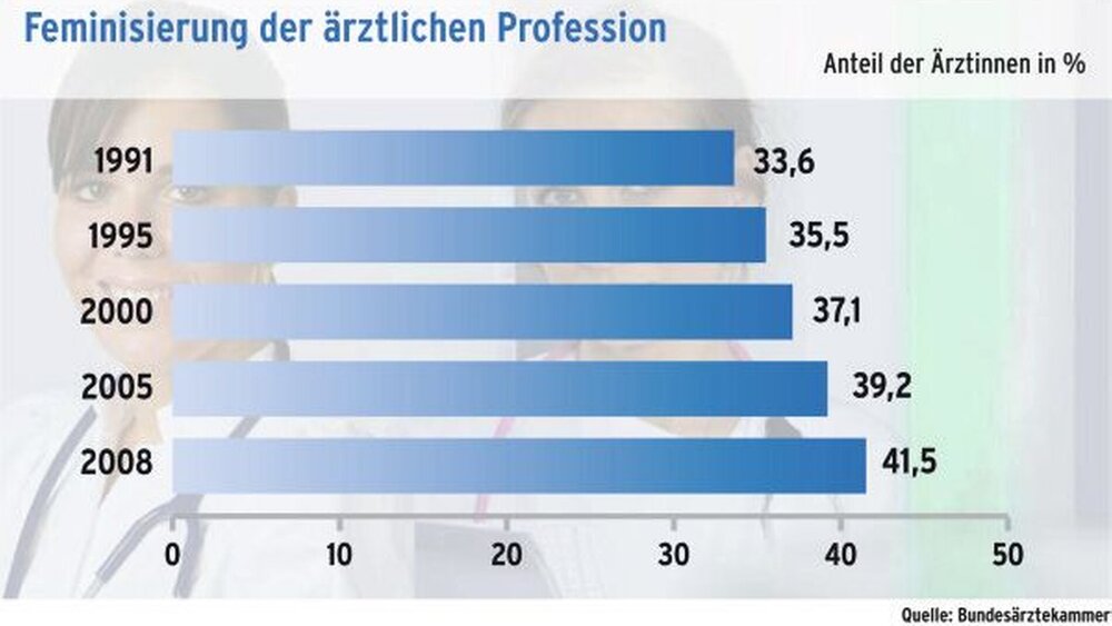 Dass ein Aufbruch der festen Strukturen in der Medizin notwendig wird, belegt auch die Bundesärztekammer. Sie verzeichnet einen allgemeinen Trend zur Arbeitszeitverkürzung, weshalb sich das Arbeitszeitvolumen auf mehr Köpfe verteilen müsse. BÄK-Vizepräsident Frank Ulrich Montgomery hatte bereits wiederholt an die Politik appelliert, die Arbeitsbedingungen für Ärzte zu verbessern. Moderne junge Menschen, gleich ob Arzt oder Ärztin, seien nicht mehr bereit, ihren Lebensstil dem Beruf vollständig unterzuordnen und massive Überstunden zu leisten. Montgomery bedauert, dass in vielen Klinikabteilungen 20 bis 50 Prozent der Stellen unbesetzt blieben. Zu den flankierenden Maßnahmen gehörten eben auch der Ausbau der Kinderbetreuung und die Entlastung von Bürokratie. Der gemeinsame Fokus sollte auf eine langfristige, flächendeckende und moderne medizinische Grundversorgung durch qualifizierte Ärzte und Ärztinnen gelegt werden.