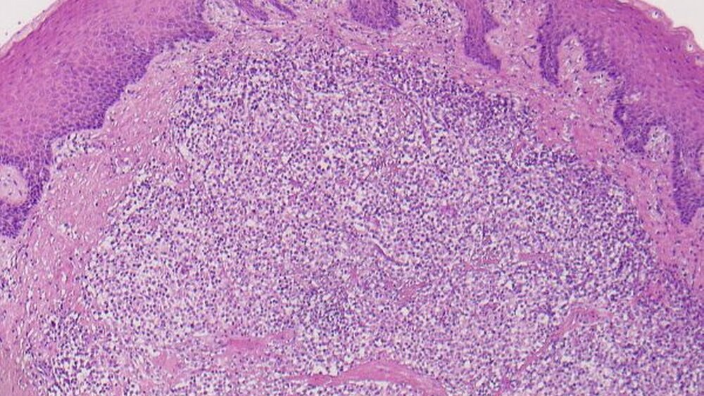 Die histopathologische Aufarbeitung des Resektats ergab eine floride chronisch unspezifische Gingivitis mit reaktiver Schleimhaut ohne Anhalt für Malignität.