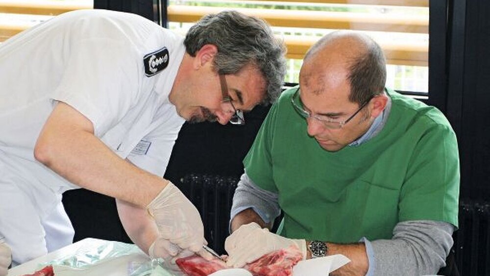 In einem Hands-on-Kurs konnte jeder Teilnehmer diese vorgestellten Operationstechniken an Tierphantomen umsetzen. Diese praktische Übungen wurden durch die erfahrenen Parodontologen Dr. Beate Schacher, Frankfurt am Main, Oberfeldarzt Dr. Jochen Weyer, Bundeswehrkrankenhaus Berlin, und Oberfeldarzt Michael Luepke, Bundeswehrkrankenhaus Hamburg, begleitet.