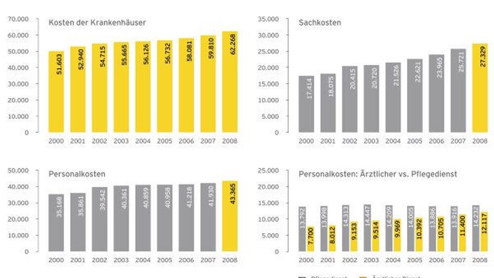 Seit dem Jahr 2000 sind die Kosten im Krankenhausbereich um über 20 Prozent gestiegen. Dieser Trend werde höchstwahrscheinlich auch in den kommenden Jahren anhalten: Konkret erwarten über 80 Prozent der befragten Krankenhausmanager einen Anstieg der Personal- und Sachkosten in den nächsten zwei Jahren. „Wegen der älter werdenden Bevölkerung und aufgrund neuer diagnostischer und therapeutischer Verfahren sind steigende Kosten im Krankenhaussektor vorprogrammiert – trotz aller Bemühungen um Kostensenkungen“, urteilt Nils Söhnle, Partner bei Ernst & Young.