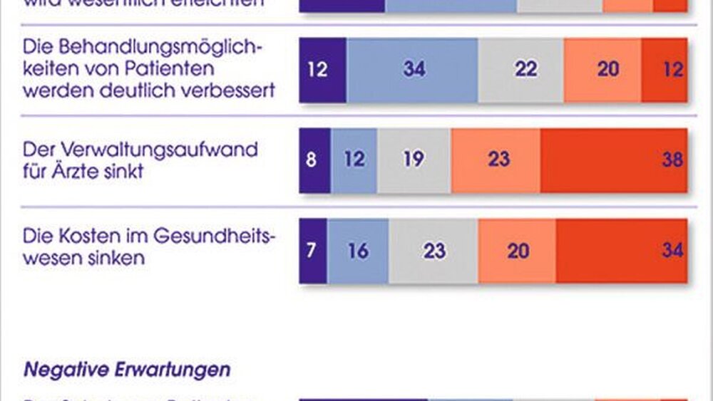 Bei der Elektronischen Patientenakte, die insgesamt 60 Prozent befürworten, zeigt sich, wie wichtig den Medizinern der praktische Wert einer Neuerung ist: Denn während 73 Prozent der Krankenhausärzte diese als große Verbesserung bewerten, tun dies nur 36 Prozent der Niedergelassenen. Erklärbar sei das durch den individuellen Nutzen und die Arbeitsrealität, meint Bartmann: Viele Hausärzte betreuten einen eigentlich gesunden Patienten über Jahre und benötigten keine ePatientenakte. Wenn aber ein Krankenhausarzt Freitag Nacht einen ihm unbekannten Patienten als Notfall behandeln muss, ist er auf jede Information angewiesen.