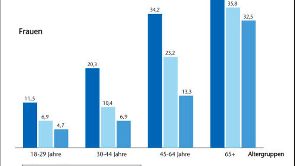 Neben dem Verdienst ist auch die Bildung entscheidend für das Gesundheitsbefinden. Dass sie in den vergangenen vier Wochen immer oder oft unter starken Schmerzen gelitten haben, berichten Ungebildete signifikant häufiger als Gebildete – ungeachtet des Alters. Sie rauchen außerdem weitaus häufiger und hören damit seltener beziehungsweise später wieder auf. Sport steht ebenfalls seltener auf dem Plan als bei Qualifizierten. Ausnahme: die 18- bis 29-jährigen Männer.