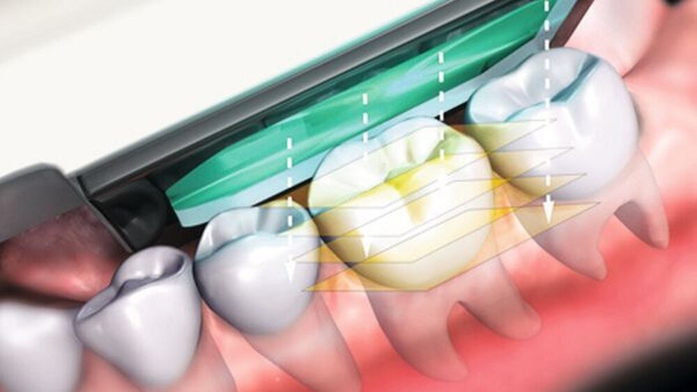 Nachdem der labortechnische Prozess bei der Herstellung vollkeramischer Restaurationen ohne CAD/CAM-Einsatz nur noch schwer vorstellbar ist, hat mit der Einführung lichtoptischer Scans zur intraoralen Abformung der nächste Schritt zur vollständigen Digitalisierung der Prozesskette von der Präparation bis zur Eingliederung des Zahnersatzes bereits begonnen (Cerec AC/Sirona, C.O.S. Lava/3M Espe, iTero/ Cadent-Straumann). Die Geräte ähneln sich in ihrer klinischen Handhabung, unterscheiden sich jedoch in ihren Funktionsprinzipien bei der Gewinnung dreidimensionaler Datensätze: Cerec AC nutzt für die Aufnahmeeinheit kurzwelliges Blaulicht (470 NanoMeter) und arbeitet nach dem Prinzip der Streifenlichtprojektion (Abbildung 5). Der Scanvorgang erfolgt in Form von Einzelbildern; Winkelaufnahmen erfassen Zahnareale unterhalb des Äquators und erhöhen die Wiedergabegenauigkeit. Mehrere Aufnahmen werden durch Matching zu einem Quadranten oder Ganzkiefer zusammengerechnet, ebenso Gegenbiss und Bissregistrat (Abbildung 6). Das Wavefront Sampling von C.O.S. Lava erfasst die Zahnform durch die Bewegung der Videokamera über die Zähne. Durch Positionsänderung der einzelnen Bildpunkte während der Aufnahme kann deren Abstand zur Kamera berechnet werden, wodurch eine dreidimensionale Darstellung der Zahnreihe entsteht (Abbildung 7). Der iTero Scanner arbeitet nach dem Prinzip der Laser-Triangulation. Die Aufnahme erfasst den Zahn und scannt vertikal 300 Ebenen mit jeweils 50 μm Tiefe (Abbildung 8).