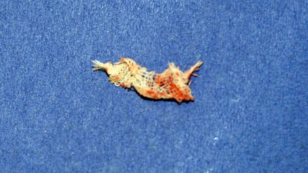 Ein 21-jähriger Patient mit unauffälliger Allgemeinanamnese wurde aufgrund einer zunehmenden schmerzhaften, paramandibulären Schwellung links in unsere Praxis überwiesen. Anamnestisch war zu erfahren, dass dem Patienten vierzehn Monate zuvor alle vier Weisheitszähne entfernt worden waren. Der Eingriff wurde in einer Praxis für Mund-, Kiefer- und Gesichtschirurgie durchgeführt und verlief nach Aussage des Patienten komplikationsfrei. Vor vier Wochen wurde der Patient aufgrund einer Schwellung des linken Unterkiefers von seinem Hauszahnarzt wieder in eine Praxis für Mund-, Kieferund Gesichtschirurgie überwiesen. Laut Arztbrief erfolgte dort eine enorale Abszessinzision regio 38 und eine anschließende Streifeneinlage sowie begleitend eine antibiotische Therapie mit Clindamycin 600mg für die Dauer von zwei Wochen. Der Verdacht einer Aktinomykose-Infektion als Ursache der Entzündung konnte damals bei der histologischen Untersuchung des entnommenen Biopsiematerials nicht bestätigt werden. Der Patient berichtete über eine anfängliche Besserung der Beschwerden während des Zeitraums der Streifeneinlage. Nachdem diese entfernt wurde, kam es jedoch trotz der Antibiotikamedikation zu einer erneuten Zunahme der Schwellung. Bei der klinischen Untersuchung in unserer Praxis zeigte sich eine fluktuierende Schwellung paramandibulär links, die durch einen derben Randbereich begrenzt wurde. Die Zähne 35 bis 37 reagierten im Kältetest mit CO 2 -Spray sensibel und nicht perkussionsoder druckempfindlich. Die Mundöffnung war nicht eingeschränkt und es bestanden keinerlei Schluckbeschwerden. Röntgenologisch zeigten sich im OPT keine Besonderheiten, insbesondere keine pathologischen Befunde. In lokaler Anästhesie wurde der subkutane Abszess von extraoral inzidiert und die Wundhöhle mit H 2 O 2 gespült. Während der Spülung löste sich aus der Tiefe der Wundhöhle ein Fremdkörper, der sich bei näherer Untersuchung als Gazestreifen herausstellte (siehe Abbildung). Nach der Entfernung des Streifens wurde die Wunde mittels Gummilasche drainiert und mit einem Wundverband abgedeckt. Die Medikation wurde umgestellt auf Megacillin 5M. Postoperativ erfolgten ein täglicher Verbandswechsel sowie die Spülung der Wundhöhle bis keine Pusbildung mehr festzustellen war. Bereits nach zwei Tagen hatte sich der Lokalbefund deutlich gebessert; die Schwellung war rückläufig und die Schmerzen waren nahezu nicht mehr vorhanden. Das Antibiotikum wurde nach insgesamt sieben Tagen abgesetzt.
