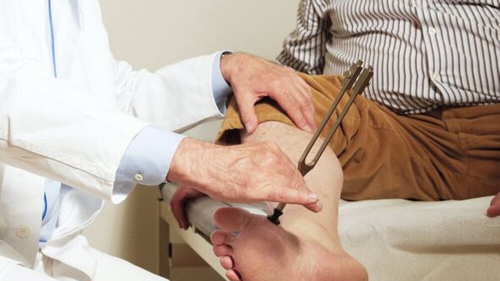 Da die Betroffenen die Komplikation oftmals lange Zeit selbst nicht erkennen oder nicht als Erkrankung wahrnehmen, ist ein regelmäßiges Screening auf eine diabetische Neuropathie wichtig. Entsprechend der Angaben in der Nationalen Versorgungsleitlinie gehören hierzu neben der Anamnese und der Erfassung der Risikofaktoren einfache neurologische Untersuchungen, wie etwa die Reflextestung, die Prüfung des Vibrationsempfindens mit einer Stimmgabel sowie das Untersuchen des Druck- und Berührungsempfindens mit einem Monofilament oder auch einfach einem Wattebausch. Routinemäßig sollten zudem Füße und Beine inspiziert werden, wobei auf Farbe, Turgor sowie auf Rhagaden und Blasenbildung, auf Hyperkeratosen, Fußdeformitäten, abgeheilte Läsionen und vor allem auf kleine Wunden sowie Hautveränderungen und/oder allgemein Zeichen einer Infektion zu achten ist.
