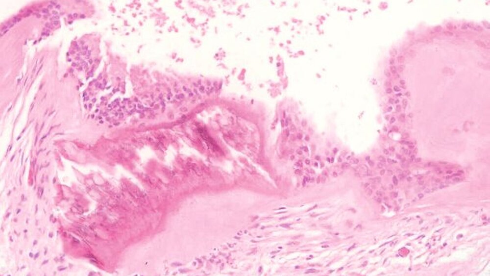 In der 3-D-Bildgebung zeigt sich typischerweise eine gut begrenzte uni- oder multiokuläre zystische Formation, die nicht selten Knochenperforationen verursacht [Chin- dasombatjaroen et al., 2009]. Die histolo- gischen Befunde sind meist unauffällig, so dass erst durch die Zusammenschau von Anamnese, Klinik, Radio- und Histologie eine entsprechende Diagnose gestellt wird.