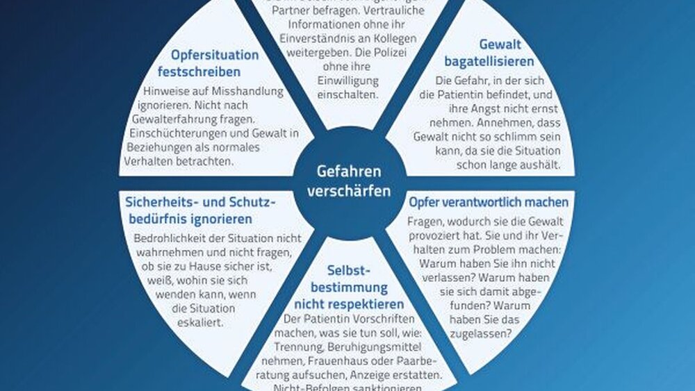 Die amerikanische Psychotherapeutin Leonore Walker beschrieb in den 1970er-Jahren erstmals ein immer wiederkehrendes Muster bei häuslicher Gewalt. Dieses Muster hat sie in einem Misshandlungszyklus dargestellt (Kasten linke Seite). Er steht für ein komplexes System, das Frauen nicht ohne Weiteres verlassen können oder wollen. Die Verkettung vieler, für sich allein betrachtet oft nicht gewalttätiger Verhaltensweisen führt zu Einschüchterung und Angst. Die Phasen sind unterschiedlich lang und auch die Phase der „Versöhnung“ (Latenzphase) ist unterschwellig spannungsgeladen. Die Phasen wiederholen sich, zum Teil jahrelang. Je länger der Zyklus läuft, desto größer ist die Gefahr der Eskalation, so Walker.