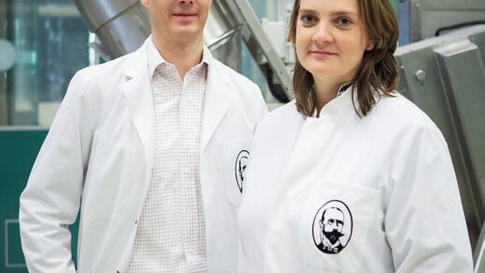 Dr. Otto Hoffmann, einer der Gründer des Unternehmens, ist bei Hoffmann Dental so präsent wie nie zuvor: Zwei Generationen später – sein Enkel Tobias Hoffmann führt gemeinsam mit seiner Frau Yvonne die Geschäfte – ziert sein Konterfei Kittel, Gläschen, Fässer, Faltschachteln und Postkarten. Ihn so in den Vordergrund zu stellen, ist eine ganz bewusste Entscheidung gewesen. Tobias und Yvonne Hoffmann wollten eine Marke entwickeln, die die Tradition des Unternehmens und die Verbundenheit mit der Familienvergangenheit herausstellen sollte. „Unsere Art von Produkten gilt mitunter als nicht mehr zeitgemäß“, erklärt die couragierte Unternehmerin. „Zahnzement wird seit geraumer Zeit von Kunststoffen, also Glasionomerzementen sowie Kompositen, verdrängt.“ Allerdings würden immer mehr Zahnärzte die alten Materialien neu entdecken. Aus gutem Grund.