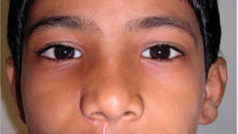 Ein zwölfjähriger Patient stellte sich mit einer seit sechs Monaten bestehenden, progredienten Schwellung der Wange rechts in einer mund-, kiefer- und gesichtschirur- gischen Abteilung in Indien vor, in der er auch behandelt wurde (Abbildungen 1 und 2). Der Patient klagte über dumpfe Schmerzen, eine Verlegung des rechten Nasenloches und eine Lockerung der Zähne im ersten Quadranten.