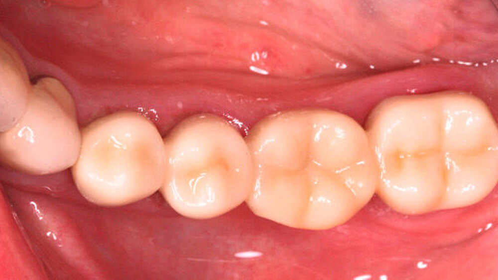 Die Al2O3-Dotierung ist verantwortlich für die Beständigkeit gegen Feuchtigkeit und beeinflusst das klinische Langzeitverhalten, bestimmt aber auch die Opazität des Werkstoffs. Beträgt der Al2O3-Anteil in der ZrO2-Gerüstkeramik 0,5 Prozent (inCoris ZI, Sirona), liegt der Anteil bei 0,005 Prozent in der semi-transparenten Version (inCoris TZI). Die Absenkung des Al2O3-Anteils begünstigt die Lichttransmission. Ob und wie die Al2O3-Reduktion sich längerfristig klinisch auswirkt, dafür liegen noch keine Daten vor. Die Adaptation der definitiven Zahnfarbe erfolgt mit Farblösungen im Tauchverfahren.
