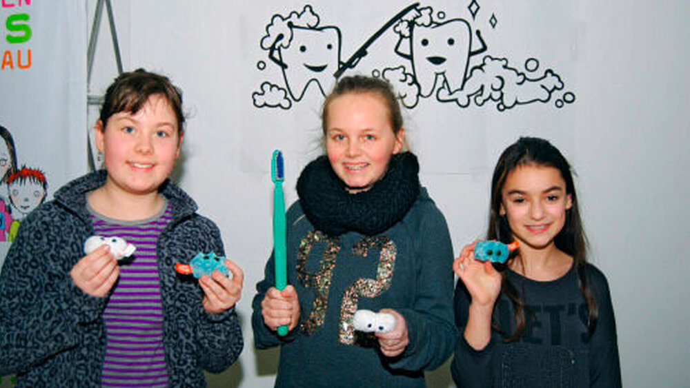 Die Kinder lernten spielerisch, wie komplex ein Biofilm aufgebaut ist und dass pathogene Keime von der physiologischen Mundflora zu unterscheiden sind. Auch das Thema Notfallmanagement fand riesigen Anklang bei dem aufgeweckten Publikum. Anhand eines Versuchs wurde demonstriert, wie stark Rote-Beete-Saft Wasser verfärbt, vergleichbar mit Blut im Speichel. Die Kinder bekamen eine genaue Anleitung, wie man im Fall eines Frontzahntraumas mit einem avulsierten Zahn zu verfahren hat. Dies ist besonders wichtig, da Kinder in dieser Altersgruppe bei Unfällen häufig nicht mehr in Begleitung von Erwachsenen sind und das gängige Erste-Hilfe-Management denkbar ungünstig für eine mögliche Replantation ist.