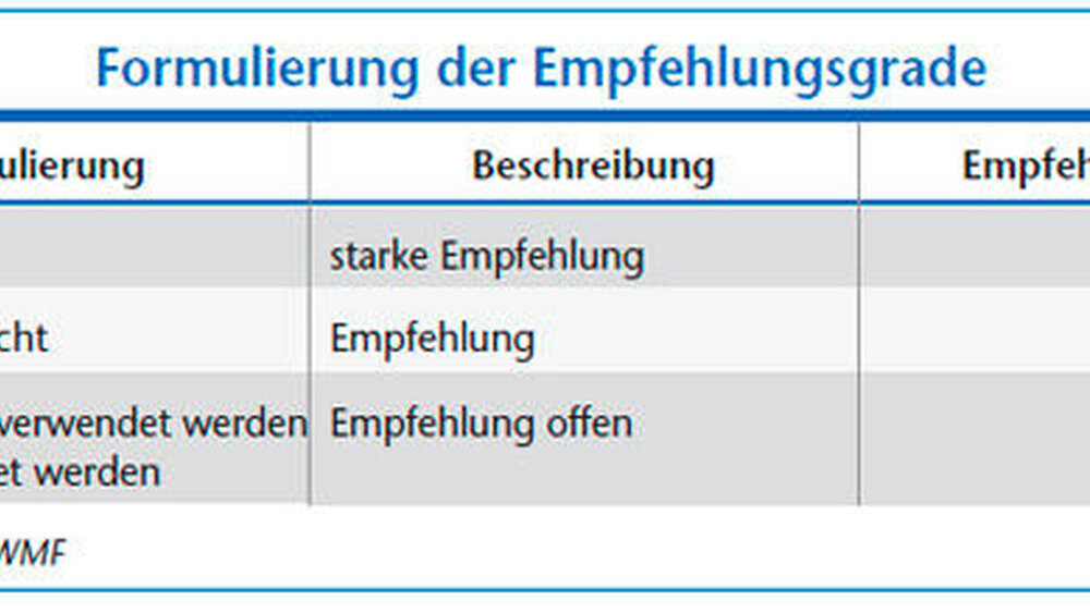 Laut AWMF sind „Leitlinien [...] systematisch entwickelte Aussagen, um die Entscheidungsfindung von Ärzten und Patienten für eine angemessene Versorgung bei spezifischen Gesundheitsproblemen zu unterstützen“ [Muche-Borowski C et al., 2011]. Offiziell über die AWMF entwickelte Leitlinien folgen strengen methodischen Vorgaben, die beispielsweise auf den AWMF-Internetseiten unterhttp://www.awmf.org/leitlinien/awmfregelwerk.htmlpubliziert sind. Das macht den Entstehungsprozess der Leitlinien kompliziert und langwierig. Prinzipiell sind verschiedene „Stufenklassifikationen“ definiert, die jeweils für ein bestimmtes, für den Anwender vollständig nachvollziehbares Entwicklungskonzept stehen. Die niedrigste Stufe (S1) stellt hierbei lediglich einen informellen Konsens einer repräsentativ zusammengesetzten Expertengruppe der Fachgesellschaft(en) dar, die höchste Klassifkationsstufe S3 hingegen eine Leitlinie mit allen Elementen systematischer Entwicklung, nämlich eine evidenz- und konsensbasierte Leitlinie [Muche-Borowski C et al., 2012]. Die neue DVT-Leitlinie entspricht der Ausbaustufe s2k und ist damit konsensbasiert.