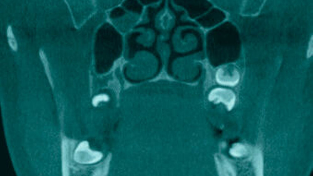 Weiterhin schloss das DVT eine Kieferhöhlenverschattung aus, stellte jedoch eine diskrete Verschattung der rechten Ethmoidalzellen sowie eine Concha bullosa als Nebenbefunde dar. Diese potenziell pathologischen Befunde geben Anlass zu einer erneuten Anamnese und klinischen Überprüfung im Verlauf.