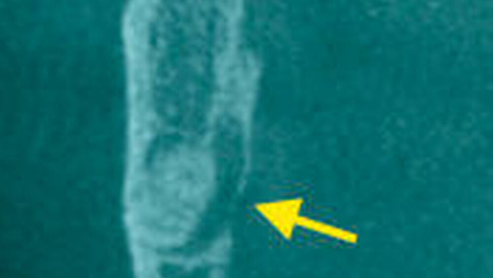 In mehreren Studien wurde gezeigt, dass das DVT geeignet ist, morphologische Besonderheiten, Lageanomalien und ins-besondere auch die fehlende Abgrenzung zwischen Zahnfach und Nervkanal darzustellen (Abbildung 2) und damit für die Einschätzung des Risikos einer Nervschädigung geeignet ist [Ghaeminia et al., 2009; Lübbers et al., 2011; Neugebauer et al., 2008; Suomalainen et al., 2010; Sursala and Dodson, 2007; Tantanapornkul et al., 2007].