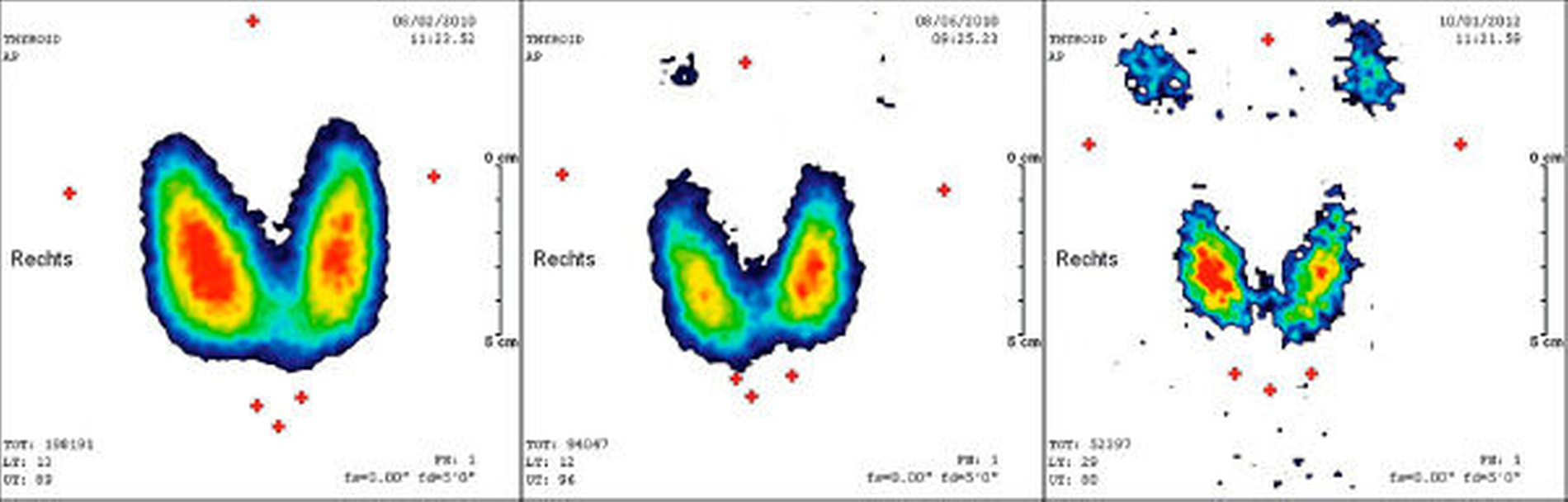 Neben der Sonografie ist als bildgebendes Verfahren bei der Schilddrüse die Szintigrafie von Bedeutung und erlaubt die Beurteilung der regionalen und der globalen Organfunktion. Geht es darum, ein Karzinom auszuschließen oder zu verifizieren, kann ferner eine Computer- oder Kernspintomografie indiziert sein.