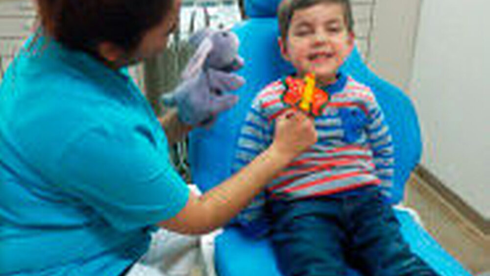 Bei der Behandlung mit einem Finger- püppchen setzt man die Fingerpuppe zum Beispiel auf dem Zeigefinger auf. Es kann ein Schmetterling, die Prinzessin, das Kasperle oder eine andere Figur sein. Diese Puppe schwebt in das Wartezimmer und begrüßt die kleine beziehungsweise große Patientin mit Namen. Die Fingerpuppe unterhält sich mit dem Kind, sie möchte dem Kind und der Mutter nun ihr schönstes Behandlungszimmer zeigen mit vielen interessanten Sachen. Im Behandlungszimmer erklärt sie Schritt für Schritt die einzelnen Instrumente und bereitet das Kind auf die Behandlung vor nach dem Prinzip „Erzählen – Zeigen – Behandeln“.
