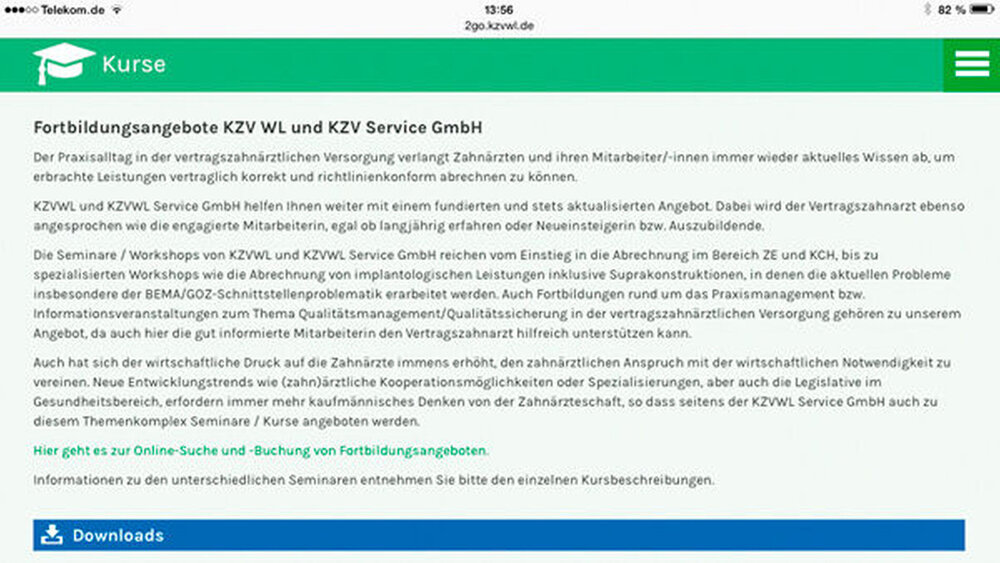 Aber warum und für wen überhaupt eine App? „Das ist keine Patienten-App. Sie richtet sich an unsere Zahnarztpraxen“, berichtet Dr. Burkhard Branding, stellvertretender Vorsitzender der KZV Westfalen-Lippe. Er hat das Projekt maßgeblich initiiert und mithilfe technischer Profis umgesetzt. „Uns geht es darum, junge Kollegen und Teams auf dem richtigen Weg anzusprechen. Insbesondere wollten wir Zahnärzten und ihren ZFA die Möglichkeit geben, sich schnell und unkompliziert über Fortbildungen, neue Abrechnungsmodalitäten und KZV-Neuigkeiten zu informieren. Jeder greift heute zum Handy, wenn er Infos sucht. Ich denke, mit diesem Service kommen wir gerade der jungen Kollegenschaft und ihren Mitarbeiterinnen sehr entgegen.“