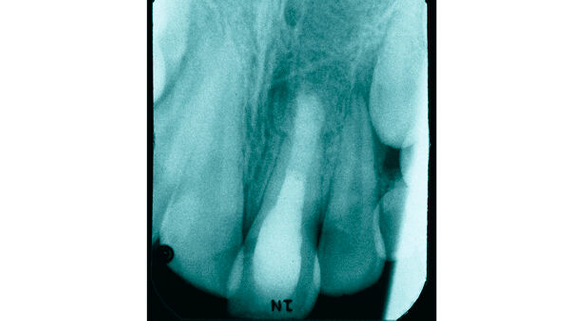 Anamnese: Im vorliegenden Fall war es bei dem zum Unfallzeitpunkt neunjährigen männlichen Patienten bei einem Fahrradsturz zu einem Frontzahntrauma gekommen. Der Junge erlitt bei dem Unfall eine Subluxation am Zahn 21. Weitere Verletzungen waren nicht vorhanden. Da sich der Unfall während eines Urlaubsaufenthalts ereignet hatte, erfolgte die Erstversorgung durch einen Zahnarzt vor Ort. Der gesunde Patient wies zu diesem Zeitpunkt ein altersentsprechendes Wechselgebiss auf. Im Zusammenhang mit der Erstversorgung wurde ein Zahnfilm (Abbildung 1) angefertigt.