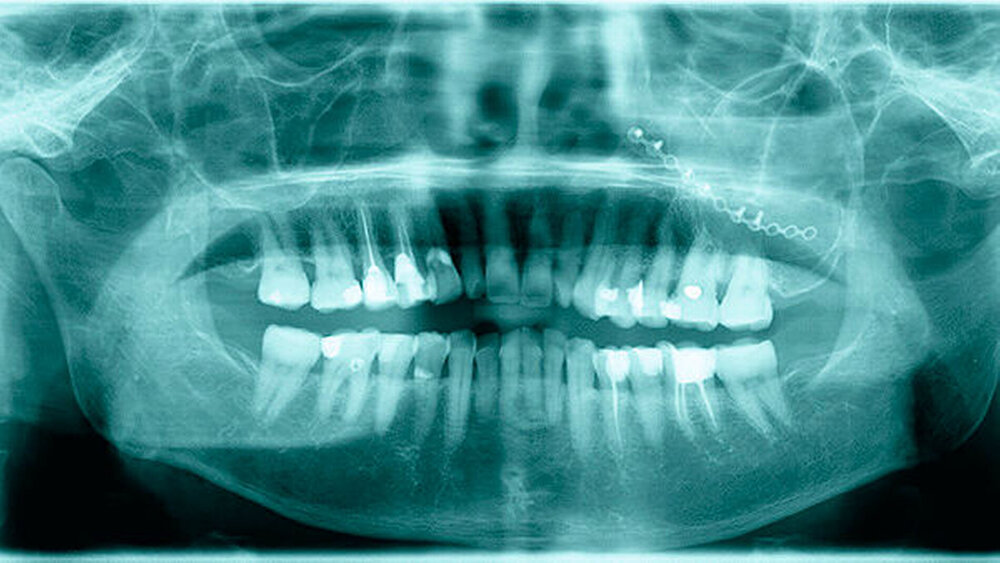 Intraoral zeigte sich bei guter Mundhygiene folgende Situation: Dem klinischen Befund schloss sich ein OPG (Orthopanthomogramm) als zusätzliche diagnostische Maßnahme an. Auf dem OPG sieht man eine ringförmige Struktur in der Kieferhöhle links mit einer zystischen Formation um die ringförmige Struktur (Abbildung 1).