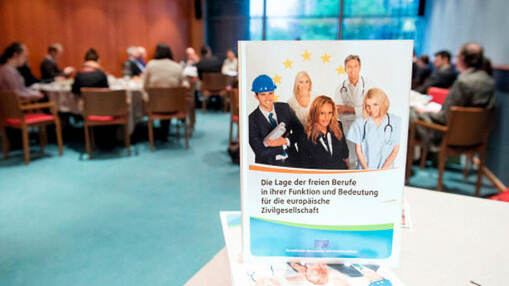 Eingeladen hatten der Europäische Wirtschafts- und Sozialausschuss (EWSA) und die SME Intergoup, ein fraktionsübergreifender Zusammenschluss von Europaabgeordneten, der sich zum Ziel gesetzt hat, den Belangen der kleinen und mittleren Unternehmen eine Stimme zu geben. Die rund 40 Teilnehmer, dabei acht Europaabgeordnete aus Deutschland, Österreich, Italien, Großbritannien und anderen EU-Mitgliedstaaten sowie ein Vertreter der Europäischen Kommission, diskutierten, unter welchen Rahmenbedingungen innerhalb der Europäischen Union sich das unternehmerische Potenzial der Freien Berufe besser entfalten könnte.