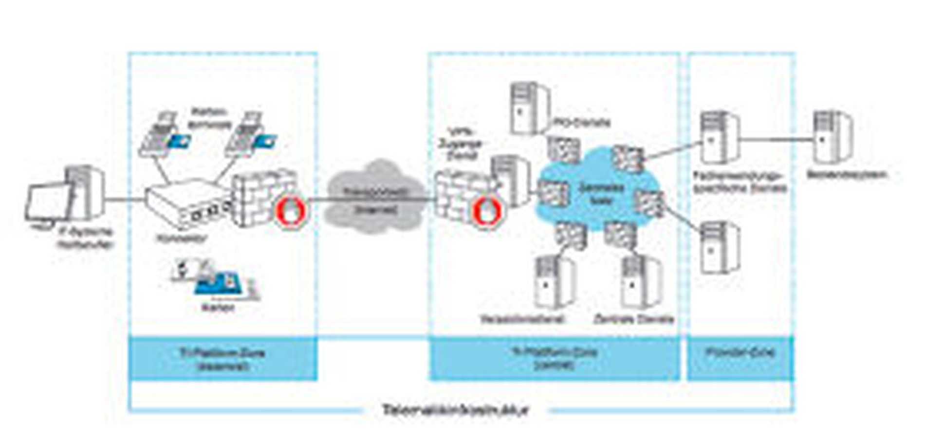 Aktuell hat der Gesetzgeber weitere Weichen für die Zukunft gestellt: Das Gesetz für die sichere digitale Kommunikation und Anwendungen im Gesundheitswesen (e-Health-Gesetz) enthält einen konkreten Fahrplan für die Einführung einer digitalen Infrastruktur mit höchsten Sicherheitsstandards und weitere Anwendungen auf der eGK. Somit sind die Spitzenverbände aller Heilberufler und der gesetzlichen Kostenträger im Gesundheitswesen verpflichtet, ein sicheres digitales Gesundheitsnetz – die sogenannte Telematikinfrastruktur (TI) – in Deutschland aufzubauen. Über dieses Netz sollen Patienten-daten sicher zwischen den berechtigten Teilnehmern ausgetauscht werden können. Damit beauftragt wurde die Gesellschaft für Telematikanwendungen der Gesundheitskarte mbH, kurz gematik. Um die Sozialdaten vor Fremdzugriffen zu schützen, formulierte der Gesetzgeber spezielle gesetzliche Regelungen zum Datenschutz und zur Informationssicherheit. Dazu gehört etwa, dass die gematik die technischen Vorgaben inklusive Sicherheitskonzept erstellen sowie die notwendigen Test- und Zertifizierungsmaßnahmen sicherstellen muss.