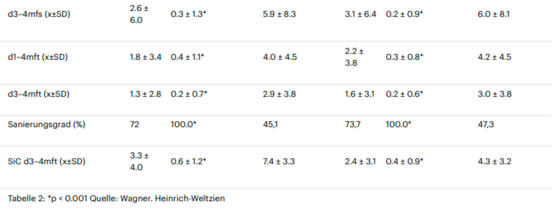 Diese Studie stellt eindeutig unter Beweis, dass Kinder mit einer regelmäßigen zahnärztlichen Betreuung im Alter von fünf Jahren einen niedrigeren Kariesbefall haben. Das PP war auch in der Lage, sozialkompensatorisch die gesundheitliche Benachteilung von Kindern mit einem niedrigen Sozialstatus zu begrenzen und ist damit ein vielversprechendes Instrument für eine ganzheitliche Gesundheitsförderung im Vorschulalter.