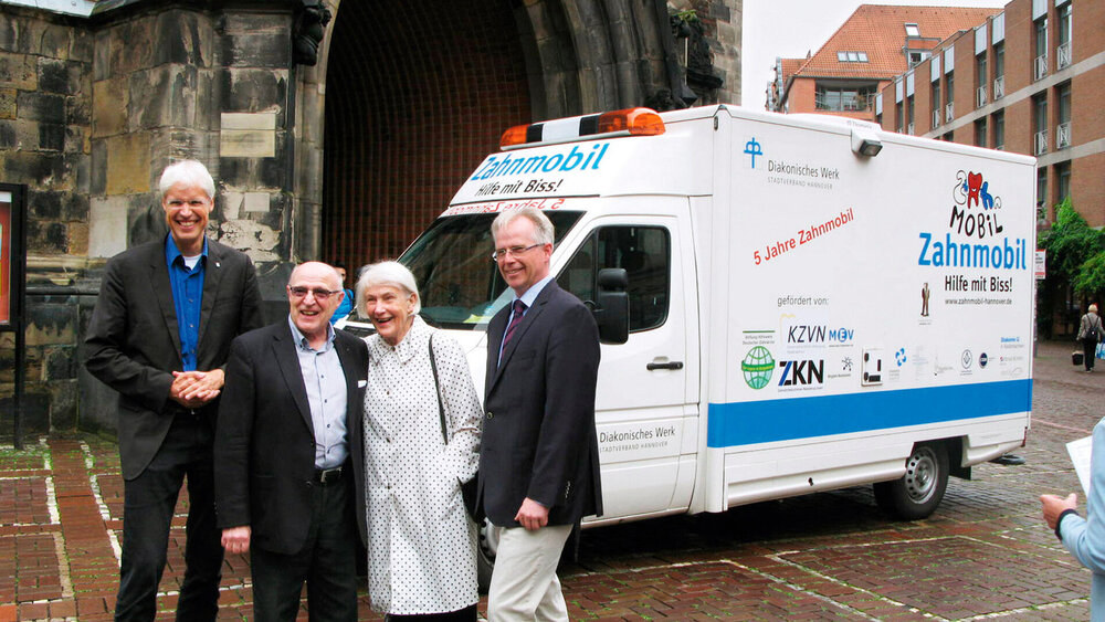 Viele Organisationen, Unternehmen aus der Dentalbranche und Einzelpersonen haben möglich gemacht, was Erwin Jordan, Sozialdezernent der Region Hannover, als „Bürgerinitiative“ bezeichnete. Eine Initiative, die ausschließlich vom Willen zur Hilfe, von Spendenaufkommen und nicht zuletzt vom persönlichen und ehrenamtlichen Einsatz vieler Menschen getragen wird. Dazu zählen neben den Initiatoren viele Beteiligte – von Helfern und Fahrern über die zahnmedizinischen Fachangestellten bis zu den behandelnden Zahnärzten, die an zwei Tagen pro Woche im Zahnmobil behandeln.