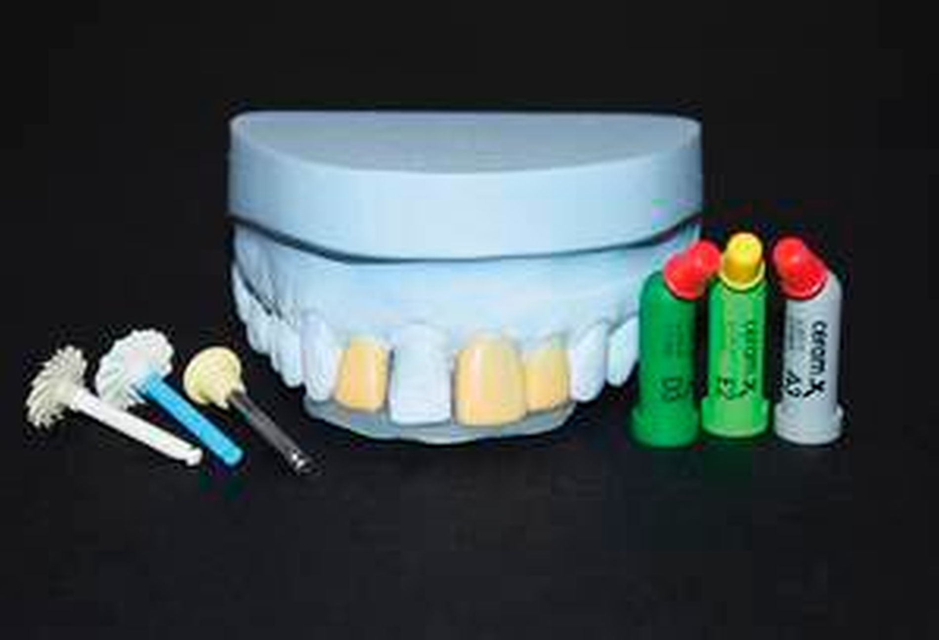 Die Kompositrestaurationen erfolgten zur absoluten Trockenlegung unter Kofferdam. Durch Zahnseideligaturen wurden die Frontzähne vollständig isoliert und der Kofferdam bis zum Gingivasaum verdrängt. Nach Konditionierung mit 36-prozentiger Phosphorsäure (DeTrey Conditioner 36, Dentsply Sirona Restorative) erfolgte die Applikation des Einflaschen Etch&Rinse Adhäsivsystems (Prime&Bond XP, Dentsply Sirona Restorative).