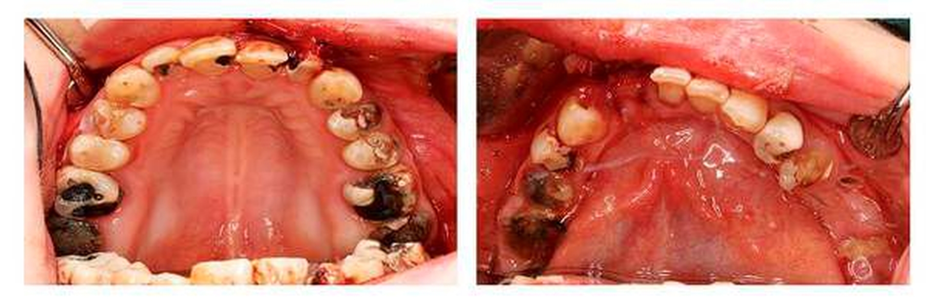 Neben dem extrem hohen Abhängigkeitspotenzial sowie einer Vielzahl an internistischen, neurologischen und psychiatrischen Nebenwirkungen wird als relevante Nebenwirkung im oralen und dentalen Bereich über den „Meth Mouth“ berichtet, der durch Xerostomie, ausgeprägte kariöse Läsionen, Schmelzerosionen, Knirschen und Bruxismus, Muskeltrismus und Kieferklemmen beziehungsweise Kiefersperren gekennzeichnet ist [De-Carolis et al., 2015; Rommel et al., 2015; 2016a,b].