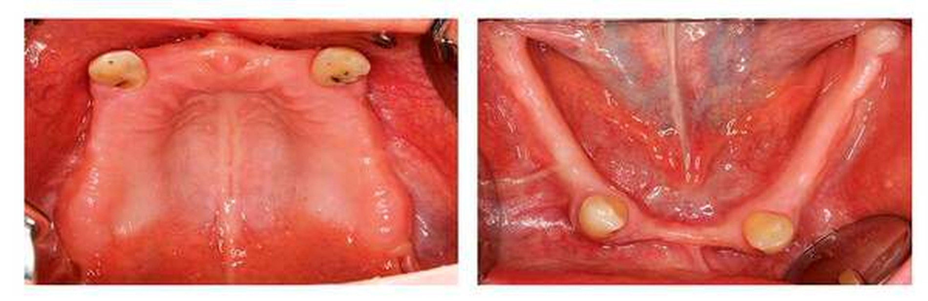 Die Patientin war stark desorientiert und agitiert. Die Fremdanamnese war bis auf einen langjährigen Crystal-Meth-Abusus, der polizeilich bestätigt wurde, unauffällig. In der CT-Kopf/Hals-Untersuchung konnten intrazerebrale Verletzungen ausgeschlossen, der zusätzliche klinische Verdacht einer Nasenbeinfraktur konnte bestätigt werden. Die weitere klinische Inspektion ergab intraoral den Befund eines kariös tief zerstörten Restzahngebisses mit multiplen, teils gelockerten, nicht erhaltungswürdigen Zähnen.