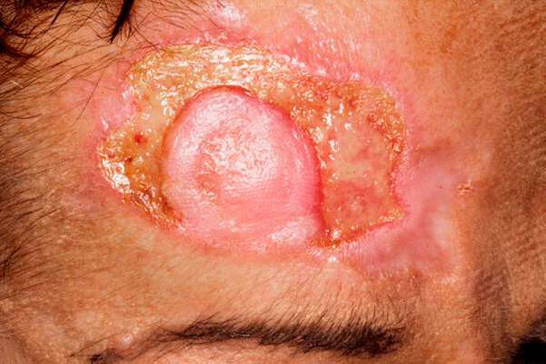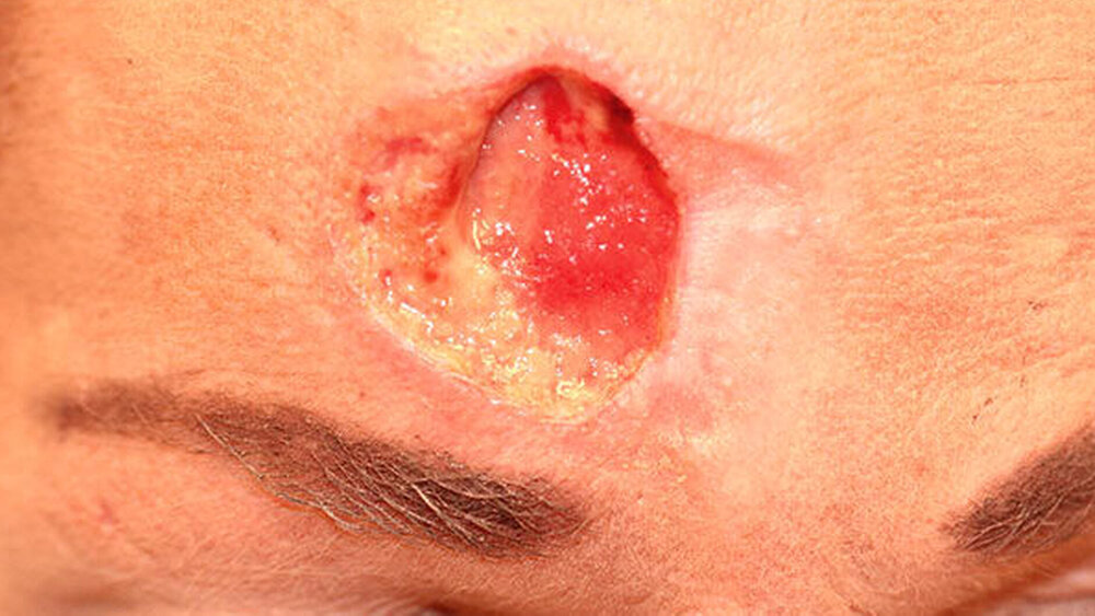 Eine 47-jährige Patientin wurde in der Klinik und Poliklinik für Mund-, Kiefer- und Gesichtschirurgie der Uniklinik RWTH Aachen konsiliarisch zur Mitbeurteilung einer nicht abheilenden Wunde supraorbital rechts vorgestellt.
