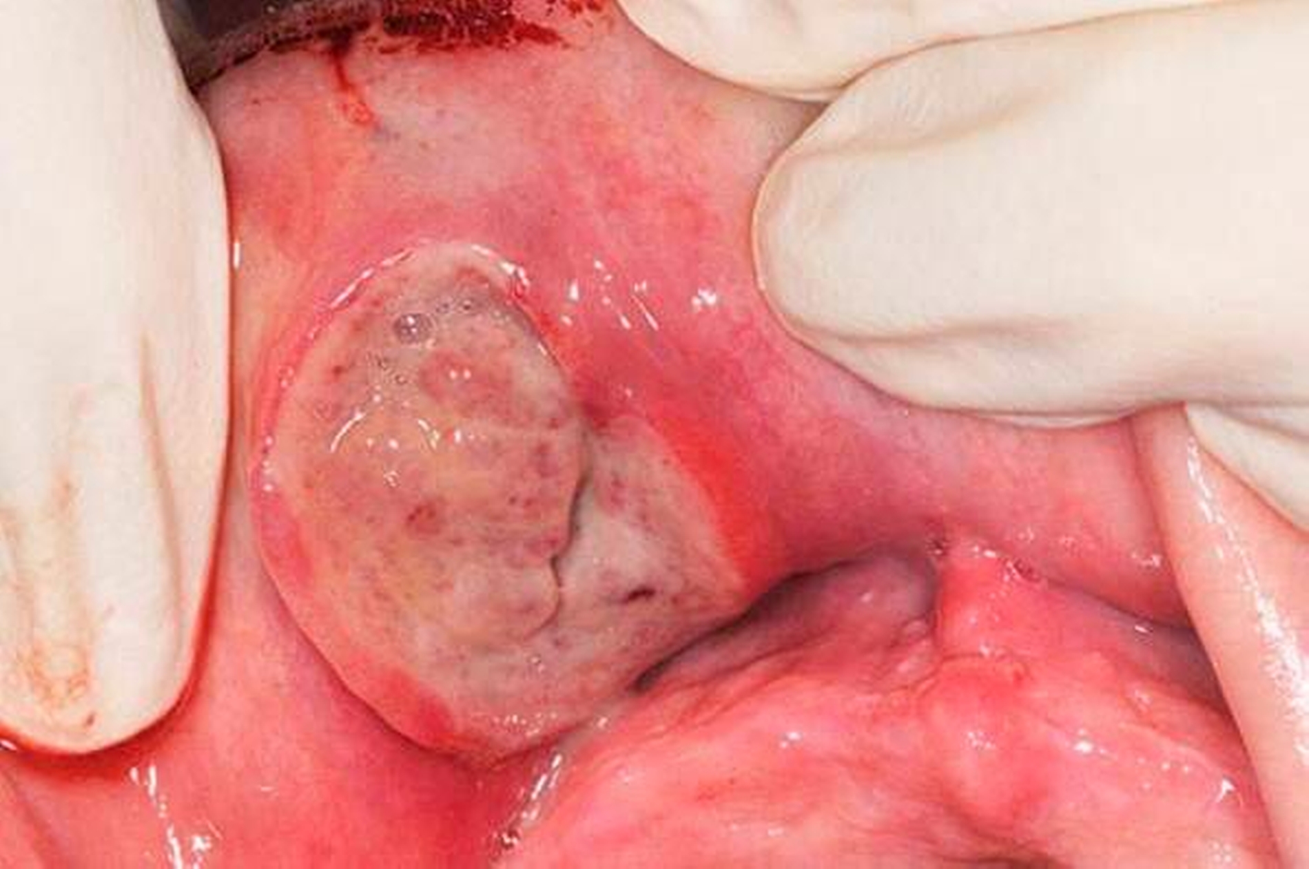 Ein 25-jähriger Patient stellte sich zur Abklärung einer schmerzhaften, zyklisch-erosiven, therapierefraktären Veränderung der Gingiva regio 13–23, die anamnestisch bereits seit circa 1,5 Jahren vorhanden gewesen sei, vor. Er gab einen Morbus Crohn als Nebenerkrankung an, wobei dieser – zum Zeitpunkt der Untersuchung – gut unter Kontrolle sei. Durchfälle bestünden aktuell nicht, eine antiinflammatorische Therapie werde auf Wunsch des Patienten nicht mehr durchgeführt.