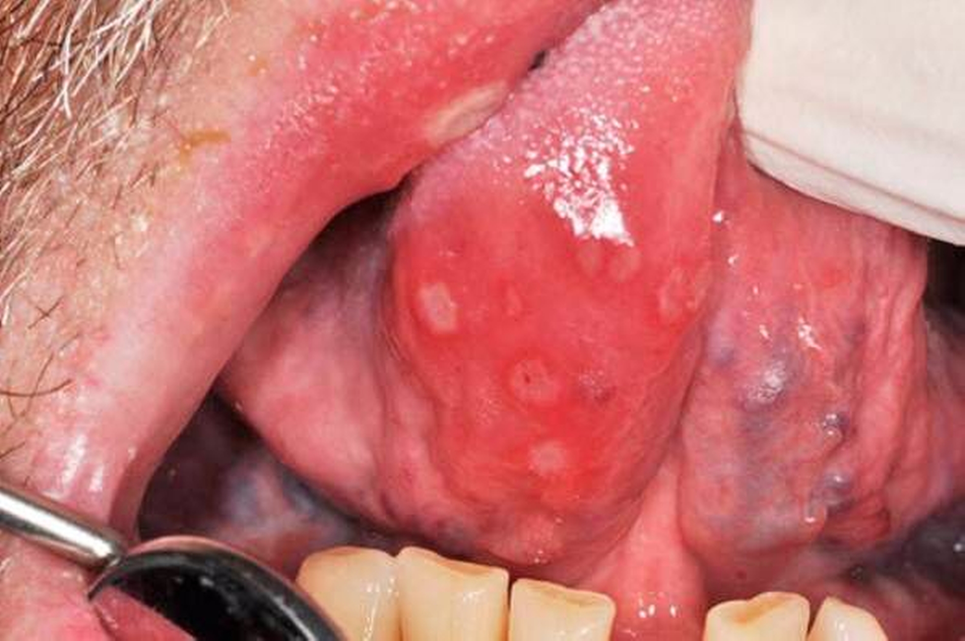 Die unspezifischen, isolierten gingivalen Mundschleimhautveränderungen mit ausgeprägten Beschwerden waren für die allein klinische Diagnosestellung zunächst irreführend, zumal eine simultane Läsion der Genitalschleimhaut bestand. Eine genitale Mitbeteiligung findet man häufig beim oralen Lichen planus oder beim Morbus Behcet. Klinische Hinweise auf eine orofaziale Granulomatose (wie eine Lippenschwellung) fehlten. Die weiterführende diagnostische Abklärung war daher vor allem auf den Ausschluss von Autoimmunmukositiden oder arzneimittelassoziierten Mundschleimhautveränderungen ausgerichtet.