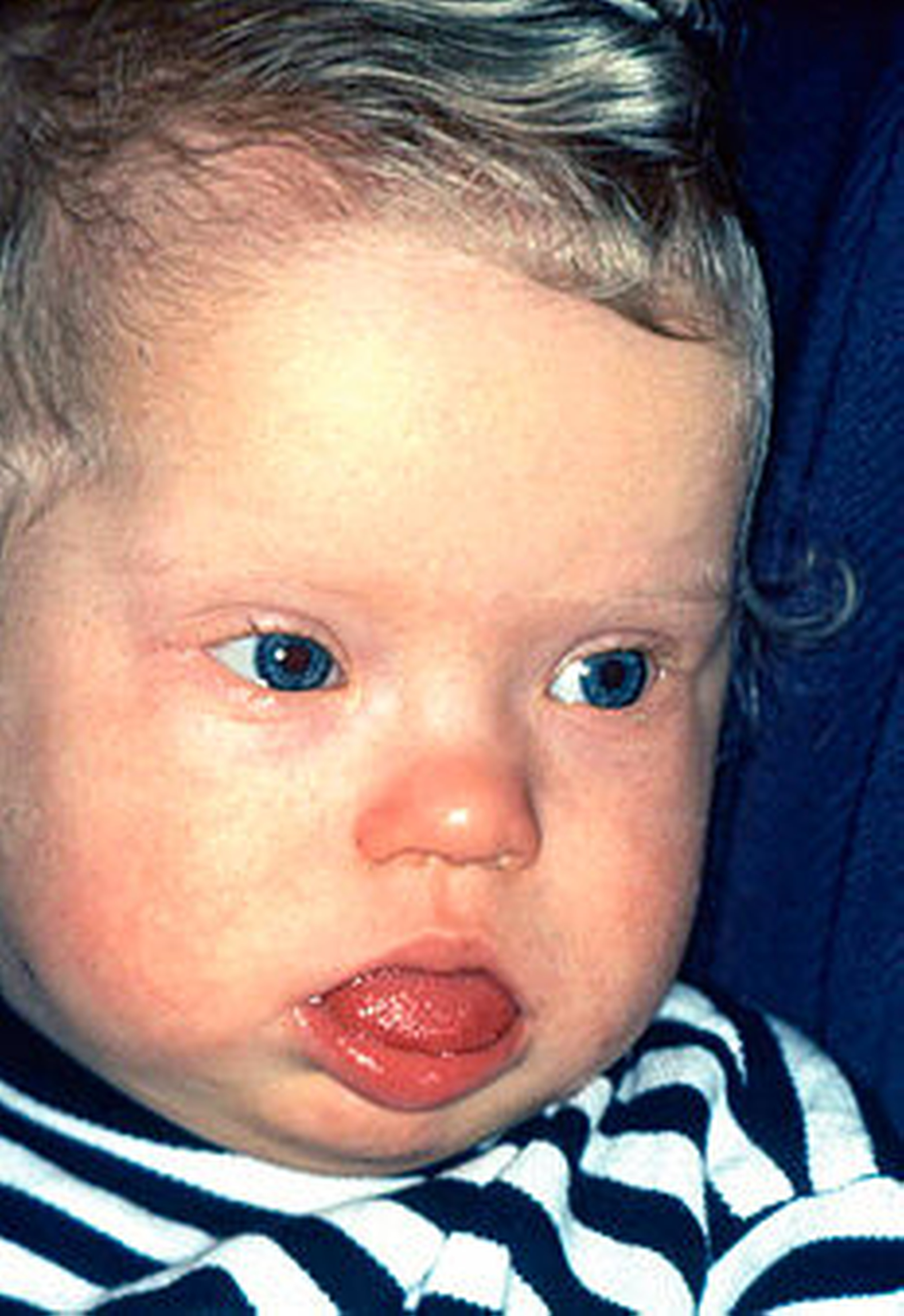 Anomalien der Zahn- und Kieferstellung (Dysgnathien, die signifikant erhöht sind, insbesondere durch verstärkte anteriore sagittale Schädelbasisverkürzungen mit Kreuzbiss, der signifikant häufiger auftritt, sowie mit offenem Biss)