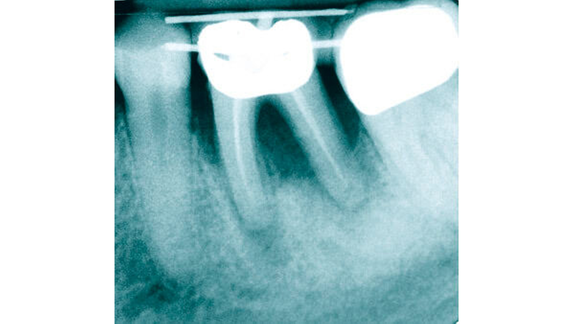 Sowohl die klinische Situation nach Eingliederung als auch die radiologische Nachkontrolle zeigen einen suffizient versorgten eigenen Zahn 36. Dies konnte trotz der ursprünglichen Osteolyse von etwa 80 Prozent ohne Zuhilfenahme von Fremdmaterialien und ohne jegliche chirurgische Intervention erreicht werden.