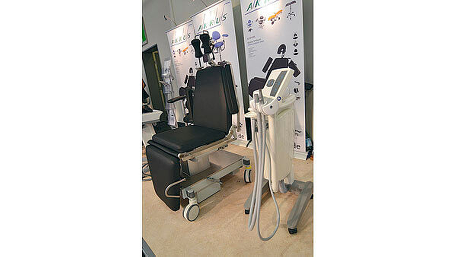 Gute Konzepte werden für die Behandlung von Patienten benötigt, die gesundheitlich oder in anderer Weise eingeschränkt sind. Ein mobiles Behandlungsgerät enthält alle zentralen Instrumente, einschließlich Absaugung, bei einem Gesamtgewicht von nur 8,6 Kilogramm (Abbildungen 5 und 6). Ein rollbarer Behandlungsstuhl, der zum Beispiel in Pflegeeinrichtungen verwendbar ist, erlaubt auch eine aufrechte Patientenposition (Abbildung 7).