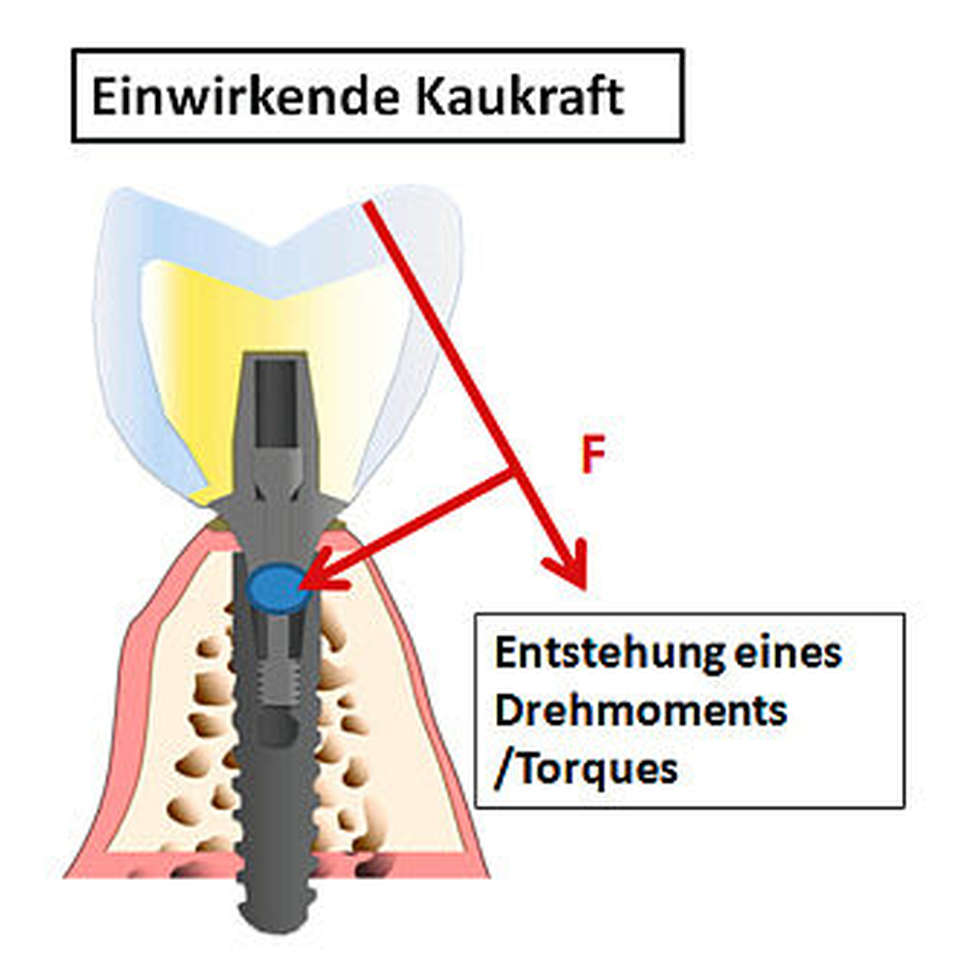 So versucht Weinberg, Überbelastungen und ein frühzeitiges Versagen der Implantate durch eine vertikale Krafteinwirkung und eine daraus resultierende Reduktion des ansetzenden Torque zu vermeiden [Weinberg, 1998]. In diesem Zusammenhang ist Torque als Drehmoment zu verstehen, das nach Zipprich et al. an der Implantat-Abutment-Verbindung ansetzt (Abbildungen 1 und 2).