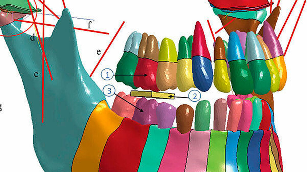 Erste Ergebnisse kinetischer Simulationen unserer Forschungsgruppe zeigen in Übereinstimmung mit eigenen klinisch experimentellen Studien, dass die klassische Vorstellung der axialen Krafteinleitung in die Zähne unter Funktion eine pure Fiktion ist. Denn dieser biomechanische Zustand ist weder in der natürlichen Funktion – das heißt beim Kauen – zu finden noch in statischer Okklusion, die – um es drastisch zu formulieren – eigentlich unter Kraftbedingungen eine parafunktionelle Aktivität (Kieferpressen) repräsentiert.