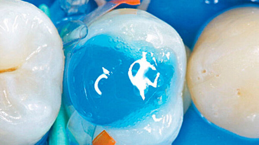 Das Prinzip der Selbstkonditionierung (Abbildung 1b) stellt für die restaurative Therapie eine große Bereicherung dar. Die mit dem Verzicht auf PS-Ätzung verbundene Zeitersparnis beschleunigt den Behandlungsablauf und erleichtert damit speziell bei Patienten mit eingeschränkter Belastbarkeit die Kontaminationskontrolle bis zur Aushärtung des Füllungsmaterials. An unübersichtlichen, schwer zugänglichen Stellen fällt dieser Vorteil stark ins Gewicht. Auch bei den SE-Bondingsystemen unterscheidet man Zwei-Schritt-Systeme (SE-2S), bei denen sich der hydrophile Primer und das hydrophobe Adhäsiv in separaten Fläschchen befinden, und Ein-Schritt-Systeme (SE-1S), sogenannte All-in-one-Adhäsive, die alle drei Funktionen (Conditioner, Primer, Adhäsiv) in sich vereinigen.