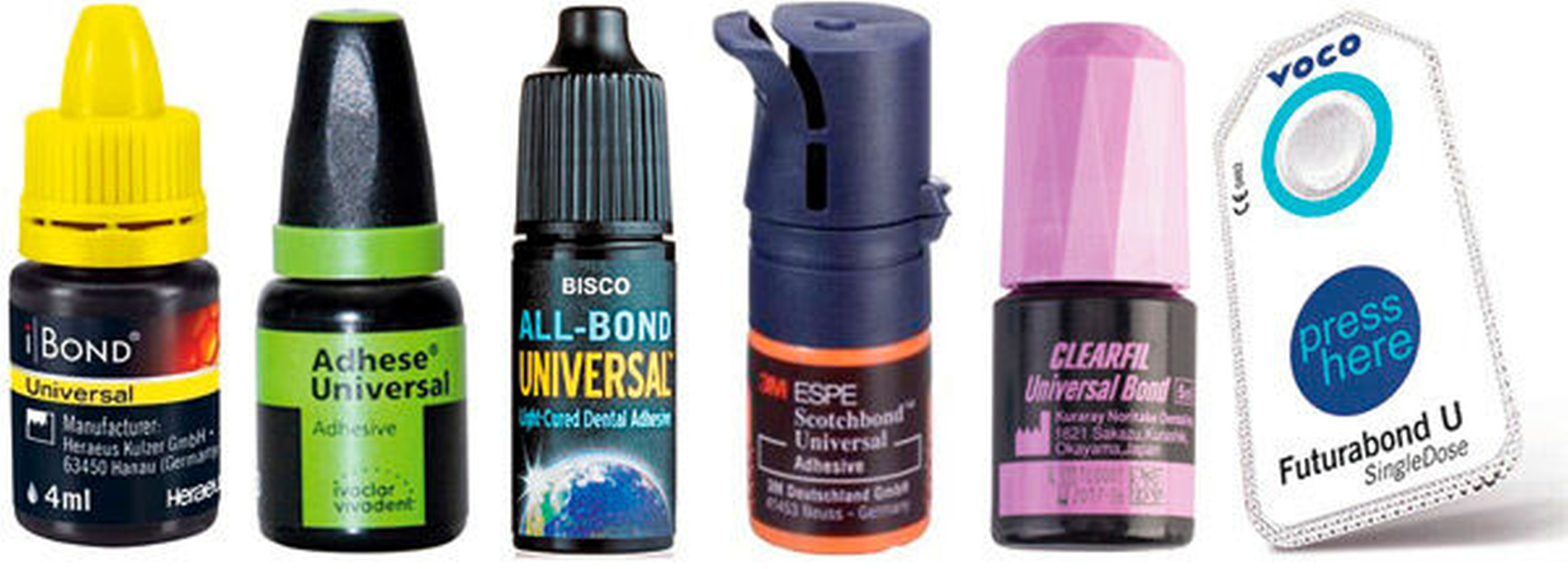 Bislang werden für viele dieser sehr unterschiedlichen Einsatzbereiche unterschiedliche Haftvermittler angeboten. Die indikationsabhängige Vielfalt im „Bonding-Dschungel“ kann allerdings zu Problemen führen. Kommen in einer Praxis mehrere Bondingsysteme mit abweichenden Lagerbedingungen und Verarbeitungsprotokollen zum Einsatz, kann dies leicht zu Verwechslungen führen und die Kontrolle über die verschiedenen Verfallsdaten erschweren.Fragen ergeben sich auch angesichts der unterschiedlichen Arten der Konditionierung: gleichzeitige Phosphorsäure(PS)-Ätzung von Schmelz und Dentin (Etch-and-Rinse, ER), Selbstkonditionierung von Schmelz und Dentin (Self-Etch, SE) oder selektive PS-Ätzung des Schmelzes mit anschließendem SE auf Dentin (SelE). Muss man sich für jede Ätztechnik ein anderes Bondingsystem zulegen? Mit Bondingsystemen, die alle Indikationen abdecken, könnten viele der angesprochenen Probleme gelöst werden. Universaladhäsive oder „multi-modale Adhäsive“ versuchen, diesem Anspruch gerecht zu werden.
