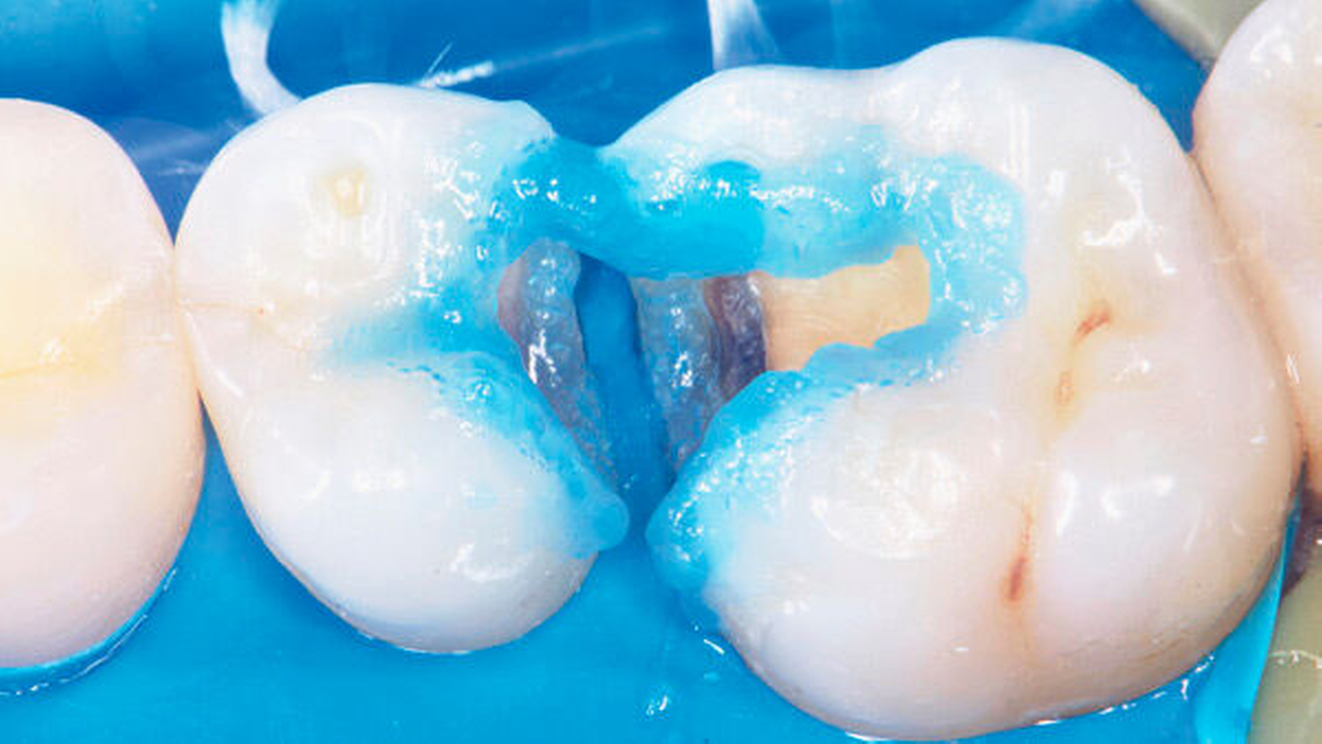 Es ist allerdings davon auszugehen, dass das gute Abschneiden eines einzelnen Universaladhäsivs nicht auf die gesamte, sehr inhomogene Materialgruppe übertragen werden kann. Unzulässig wäre es auch, aus dem Abschneiden in den relativ kleinen Zahnhalskavitäten (Durchmesser in der Regel 3 mm) Rückschlüsse auf das Verhalten in kaubelasteten Klasse-II-Restaurationen mit zervikalen Dentinrändern (Abbildung 5) zu ziehen.