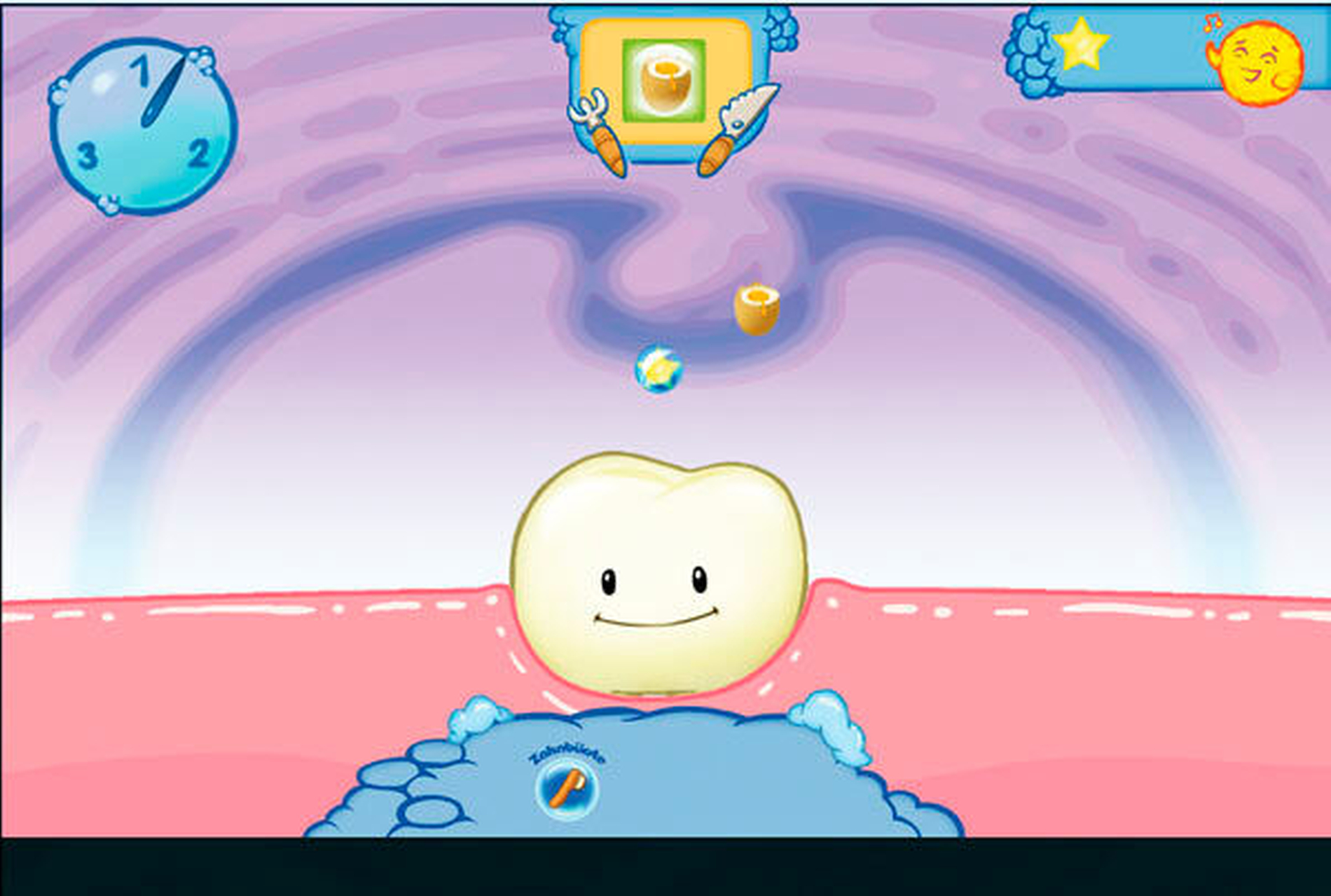”Wenn man zehn Sekunden lang entsprechend den Anweisungen geputzt hat (also je nach Spiel entweder entsprechend der angezeigten Richtung oder bei freier Richtungswahl korrekt geputzt hat), dann erscheint ein „Gut geputzt!”, um die Kinder mit positivem Feedback zu motivieren.