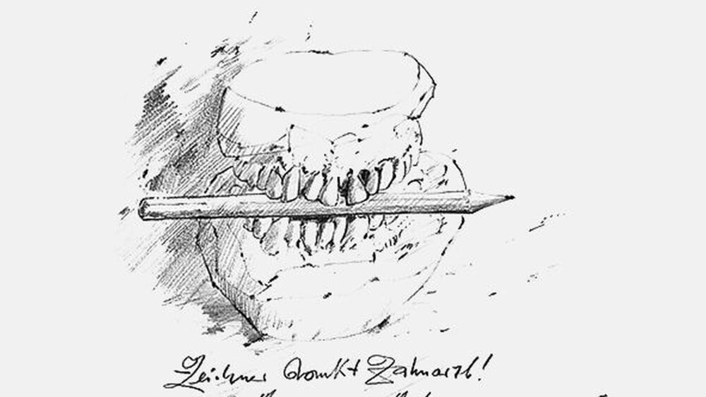 Grass scheint also keine negativen Erinnerungen an Zahnarztbesuche zu haben, was für seinen Zahnarzt, Dr. Anatol Gotfryd, spricht (siehe auch „Der Zahnarzt von Günter Grass“, zm 17/2017, S. 82–83). Vielleicht waren die Grass‘schen Zähne selbst der Auslöser seiner Probleme. Der Schriftsteller litt an einer Progenie, die Grass schließlich auch veranlasste, fortwährend Oberlippenbart zu tragen. Die Progenie führte schließlich auch zum frühen Verlust der eigenen Zähne und machte häufige Zahnarztbesuche notwendig. Daher ist es nicht verwunderlich, dass diese Thematik ihn in seinem Schaffen inspirierte und in sein Werk Eingang fand.