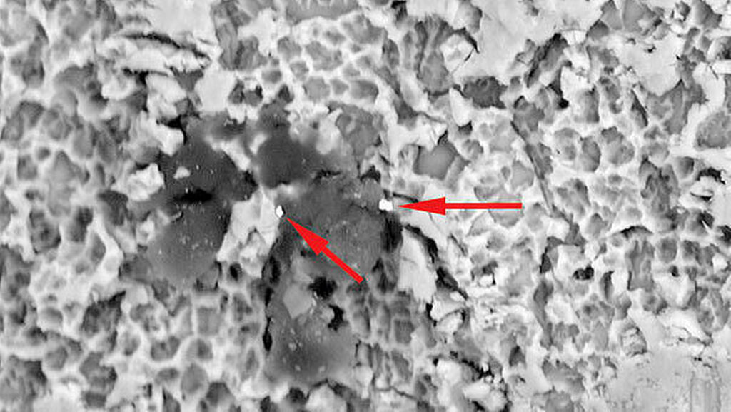 Die Implantatmuster werden anschließend nach dem in der Akkreditierung festgelegten Analyseverfahren systematisch gescannt, die gegebenenfalls gefundenen Rückstände und Partikel vermessen sowie mittels energiedispersiver Röntgenspektroskopie (EDX) einer qualitativen und quantitativen Elementanalyse zugeführt. Die durch rückgestreute Elektronen erzeugten Materialkontrastbilder eignen sich dabei besonders für diese Analysen, da sich Fremdpartikel durch andere Grauwerte im Bild deutlich abheben und so gezielte EDX-Spotanalysen erlauben.