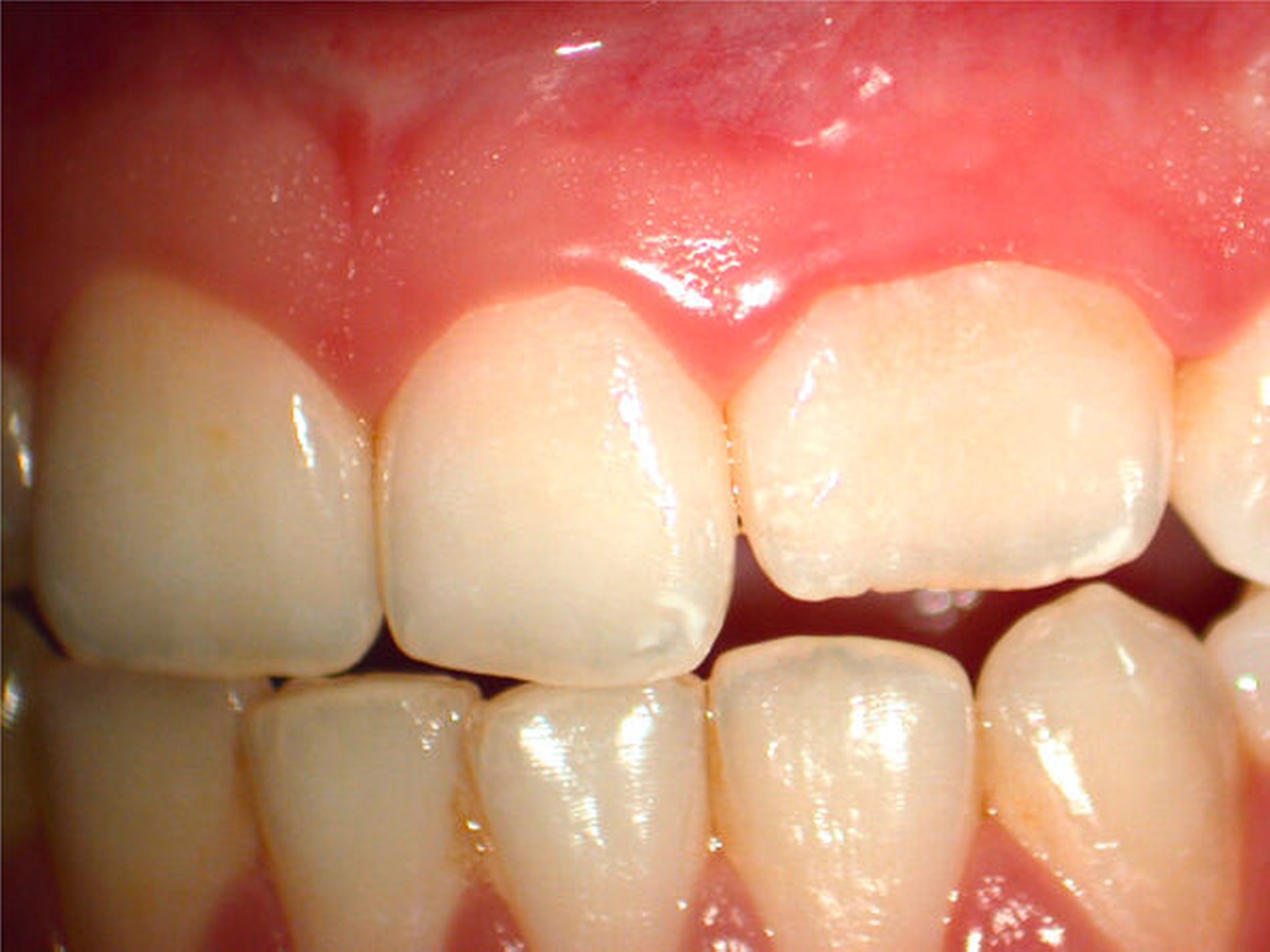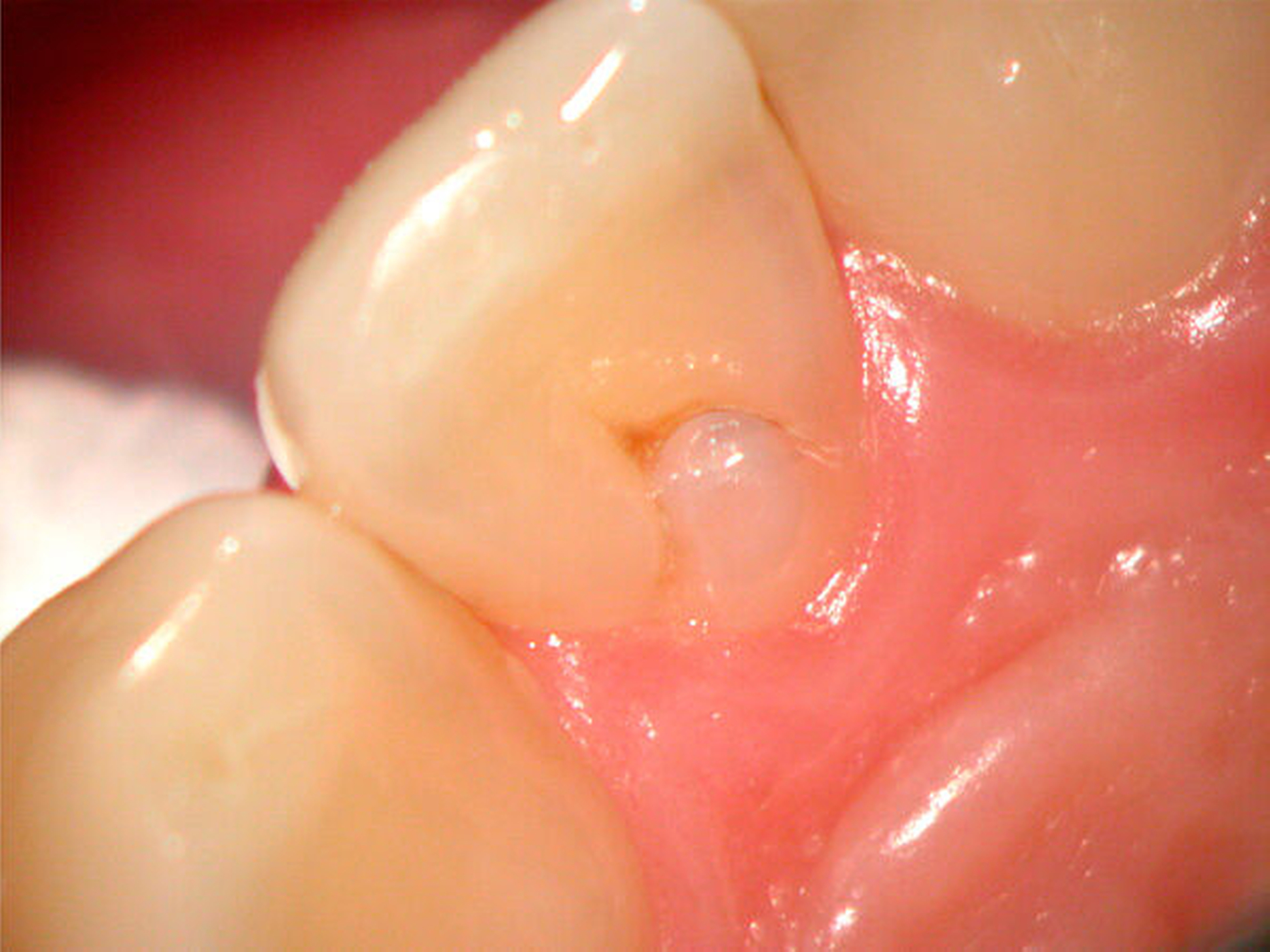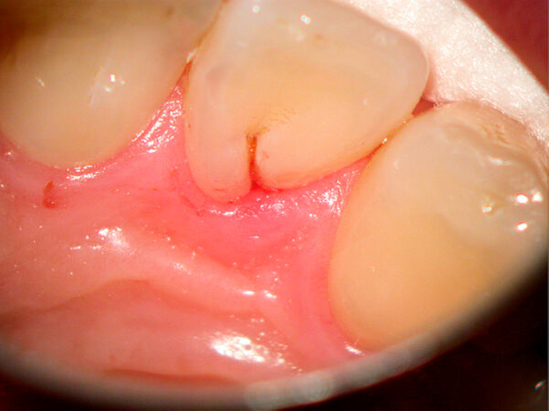 Mit dem Zahndurchbruch und der mikrobiellen Kontamination der zumeist palatinal gelegenen Wurzelfurche kann eine lokalisierte Gingivitis oder Parodontitis begünstigt werden.