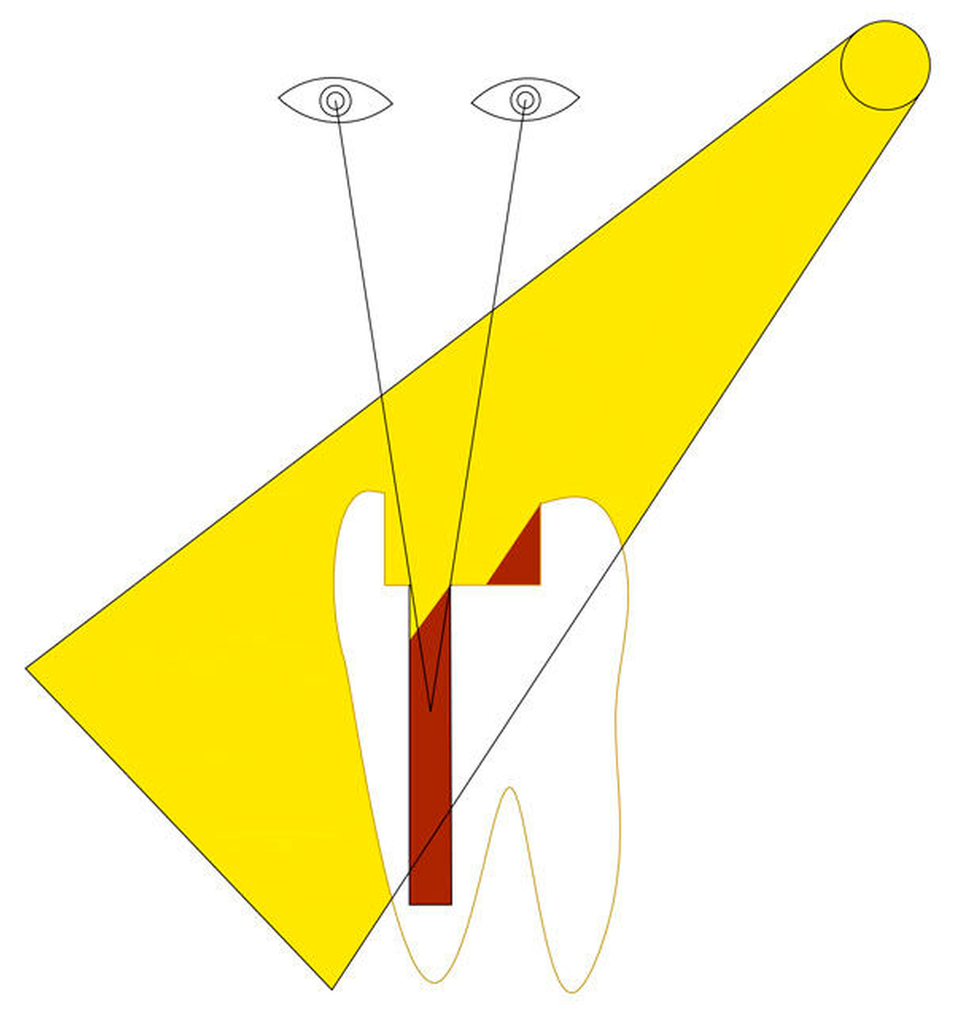 Besonders wichtig dabei ist eine hervorragende Ausleuchtung des Arbeitsbereichs. OP-Leuchten ermöglichen dieses auf Oberflächen, bei tiefen Kavitäten und insbesondere Wurzelkanälen wird jedoch eine fast koaxiale Beleuchtung benötigt (Abbildung 3), um Abschattungen zu vermeiden. Dies ist mit OP-Leuchten nur bedingt möglich, sodass sich schon Kavitäten für Wurzelstifte nicht richtig ausleuchten lassen.