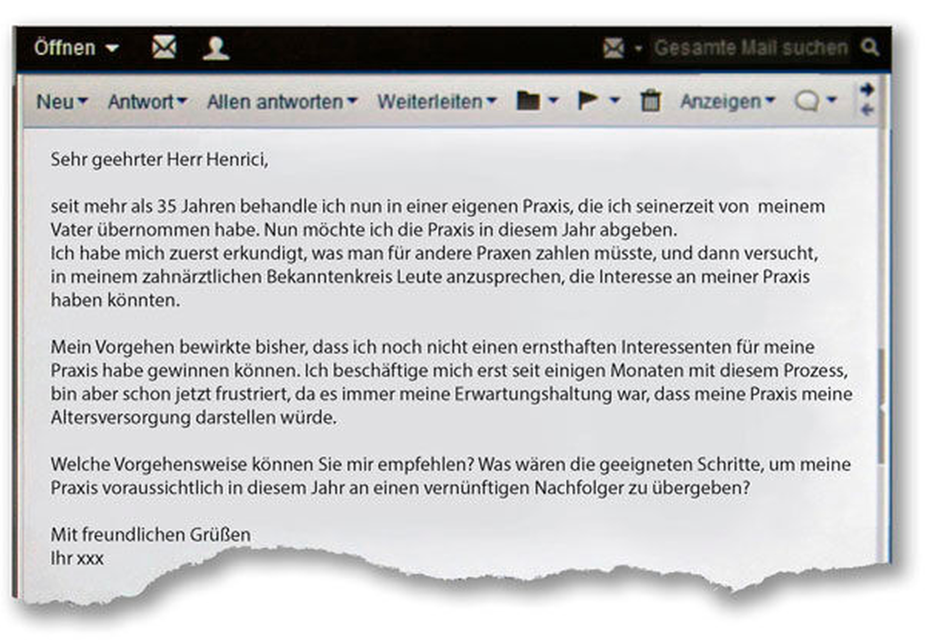 Ich erlebe zu viele Praxisinhaber, die trotz Abgabewunsch ohne einen Nachfolger bleiben und ihre Praxis nicht veräußert bekommen. Zum einen kann es daran liegen, dass die Region, in der die Praxis liegt, für heutige Interessenten und potenzielle Nachfolger nicht attraktiv genug scheint. Zum anderen scheitert eine Praxisübergabe an einen jüngeren Kollegen oftmals daran, dass das Durchschnittsalter der Patienten der Praxis zu hoch und damit wirtschaftlich eher uninteressant ist. Diese beiden Punkte in Verbindung mit einer in vielen Fällen durch Unwissenheit und persönliche Bindung überschätzten Preisvorstellung machen eine erfolgreiche Praxisübergabe derzeit für viele Praxisinhaber zu einem sehr schwierigen Unterfangen.
