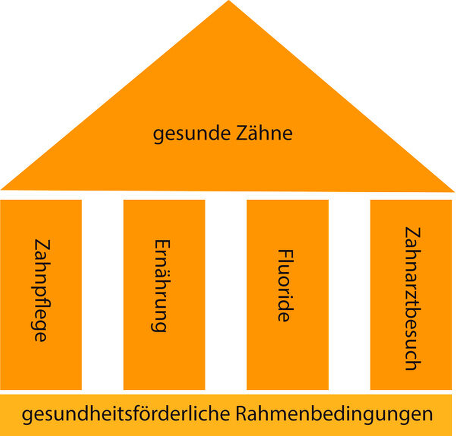 Bezüglich ihrer wissenschaftlichen Evidenz ist aber schon lange bekannt, dass diese Säulen nicht gleich wirksam sind: Bereits Publikationen aus den Jahren 1996 und 1998 führen die Erfolge in der Kariesprävention vor allem auf den Einsatz von Fluoriden zurück, so dass das Präventionsmodell hinsichtlich der Evidenz eine Schieflage hat (Abbildung 2b). Dies gilt immer noch und wird durch aktuelle systematische Reviews zur Evidenz bei der Wirksamkeit von kariespräventiven Maßnahmen bestätigt [Public Health England, 2017].