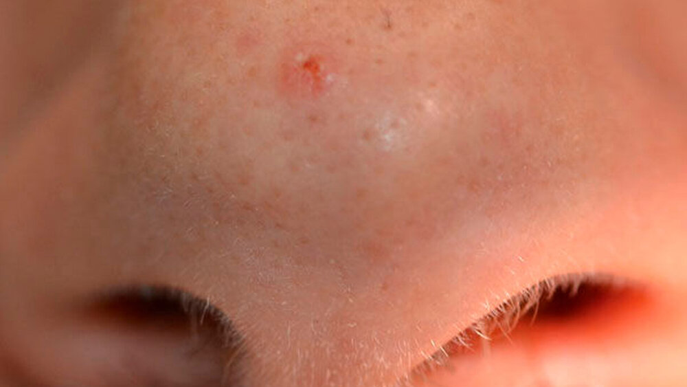 Der ansonsten gesunde Mann wurde, da bei seiner Mutter jüngst ein Basalzellkarzinom entfernt worden war, mit einer Veränderung auf der Nasenspitze vorstellig. Diese sei vor etwa gut zwei Monaten neu aufgetreten und unterliege einem stetigen Größenprogress. Immer wieder neu aufgetretene Krusten in diesem Bereich habe der Patient selbst entfernt. Weitere Symptome wie beispielsweise Schmerzen oder Pruritus hätten nicht bestanden.